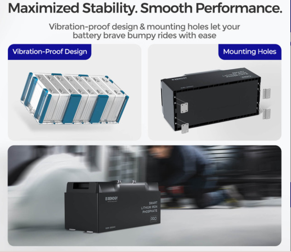 A Bateria Smart LiFePO4 12V 200Ah Renogy Pro foi feita para quem leva energia séria em qualquer lugar: motorhome, barco, cabine off-grid, sistemas solares ou camping pesado.